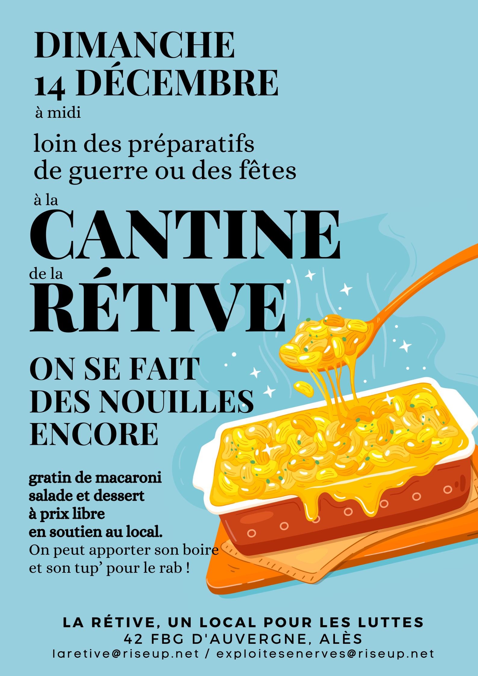 Sans chercher à se plaquer les génitoires de métal précieux (ce qui doit être lourd et foutrement inconfortable), la Rétive organise cette cantine comme des retrouvailles (gourmandes et détendues) entre amis, qui contribuent au paiement du loyer.