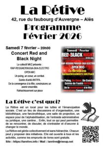 Et comme ce collectif organise et anime le local de La Rétive, on y discute aussi pratiquement des activités en cours et à venir (projections, discussions, permanences…), de nouvelles utilisations du local, d’une prochaine cantine, de petits travaux à faire… Pour que ce lieu soit un repaire pour mille rencontres, préparant et préfigurant un autre futur.